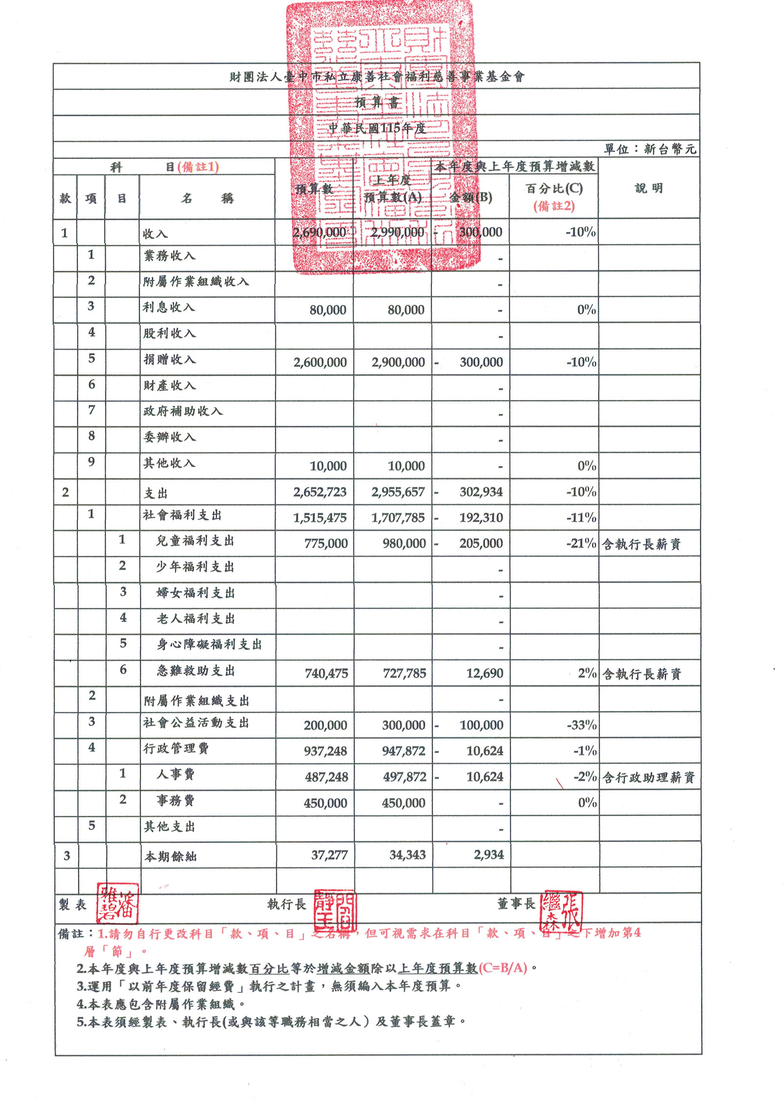 收支餘絀表